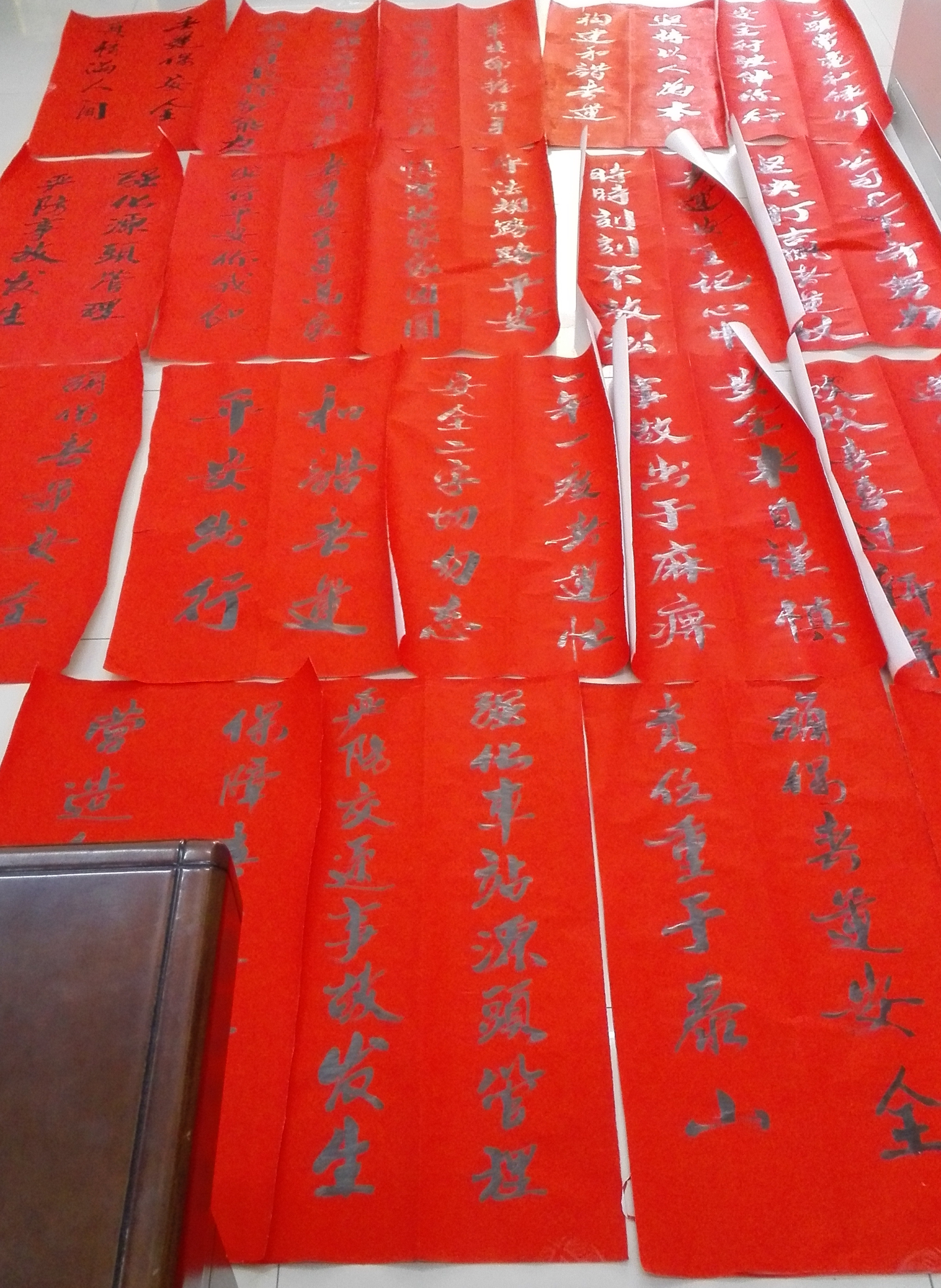 圖為洞口客運(yùn)分公司工作人員在書寫春運(yùn)安全宣傳標(biāo)語。
